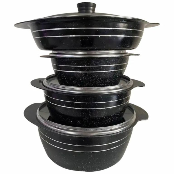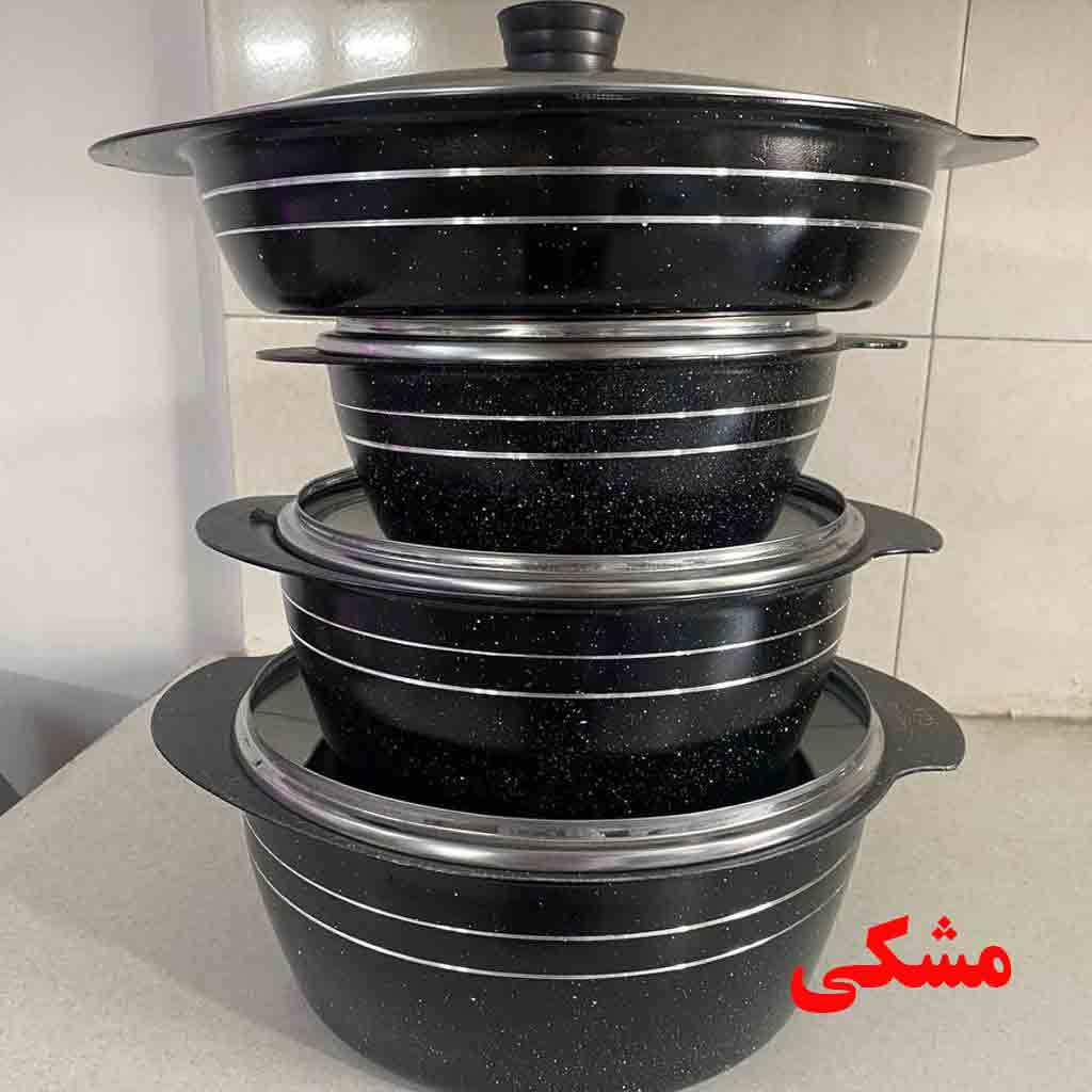 مشخصات سرویس قابلمه 10 پارچه چدن گرانیتی SPSاین سرویس قابلمه دارای بدنه بادوامی است که میتواند در برابر حرارت مقاومت بالایی داشته باشد. این سرویس از سه قابلمه با سایزهای متفاوت بهره میبرد که شما میتوانید با توجه به حجم و نوع غذا و تعداد اعضای خانواده قابلمه مناسب را انتخاب کنید. این قابلمهها در ابعاد ۲۰، ۲۴ و ۲۸ سانتیمتر تولید شدهاند. همچنین میتوانید از یک تابه ۲۸ سانتیمتری نیز برخوردار شوید. هر سه قابلمه و تابه همگی دارای دو دسته هستند که از جنس خود بدنه است و بهصورت یکتکه تولید شده است. این مزیت باعث میشود که دیگر نگران سوختن، شکستن یا آسیبدیدن دستههای ظروف نباشید.در این سرویس نیز برای قابلمهها سه عدد درپوش طراحی شده است که از جنس پیرکس نشکن هستند. درپوشهای شیشهای شفاف به شما امکان میدهند که روند پخت غذا را بدون نیاز به برداشتن آن مشاهده کنید. پوشش گرانیت داخلی قابلمهها دارای مقاومت بالا هستند که ظرف را در برابر خش، خمشدن و ضربه محافظت میکند. در کنار بدنه مقاوم و طراحی مناسب این سرویس، قیمت آن نیز بسیار مناسب در نظر گرفته شده است.