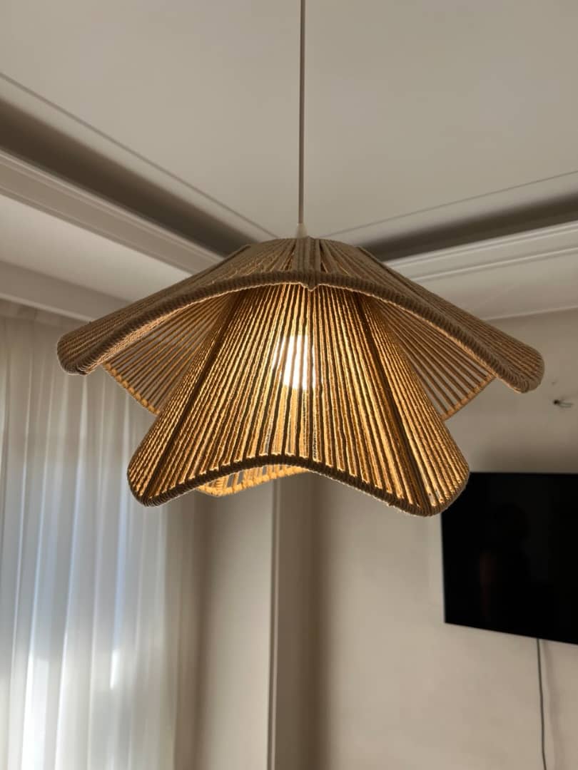 لوستر مکرومه بافته شده با نخ مکرومه به همراه سیم و اتصالات به رنگ سفید و مشکی سیم و اتصالات به صورت رندوم ارسال میشود در صورت انتخاب رنگ سیم حتما در قسمت توضیحات قید شود