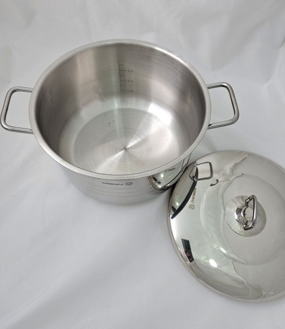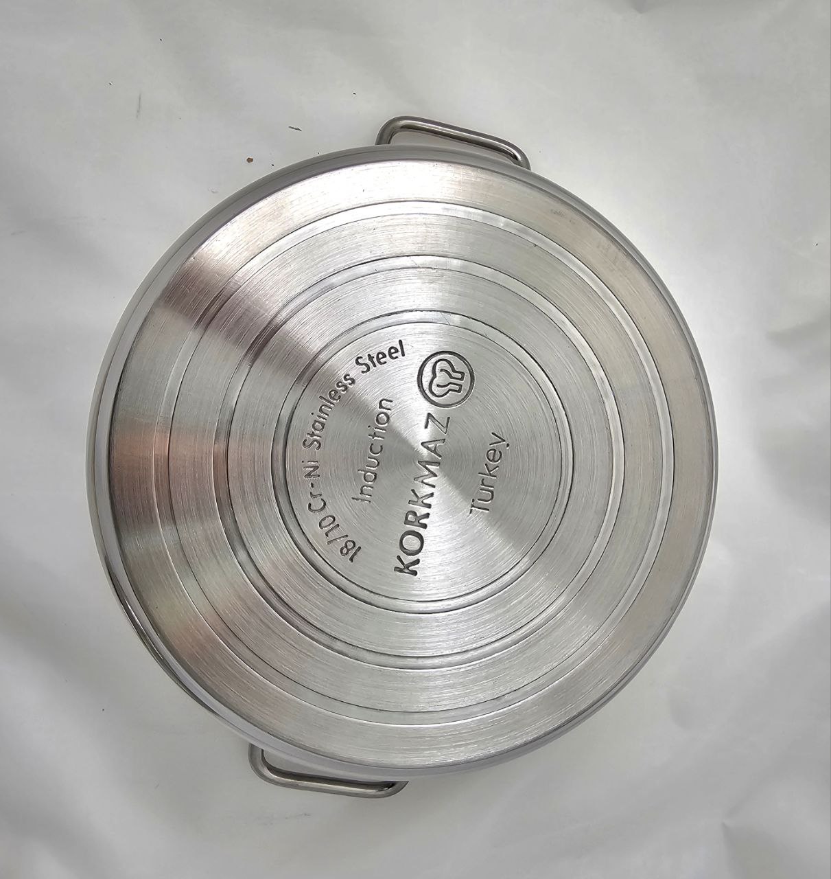 • مشخصات: قابلمه تمام استیل کرکماز استیل 18*10 ساخت ترکیه ارتفاع 14 عرض 24 کف چدن سه لایه