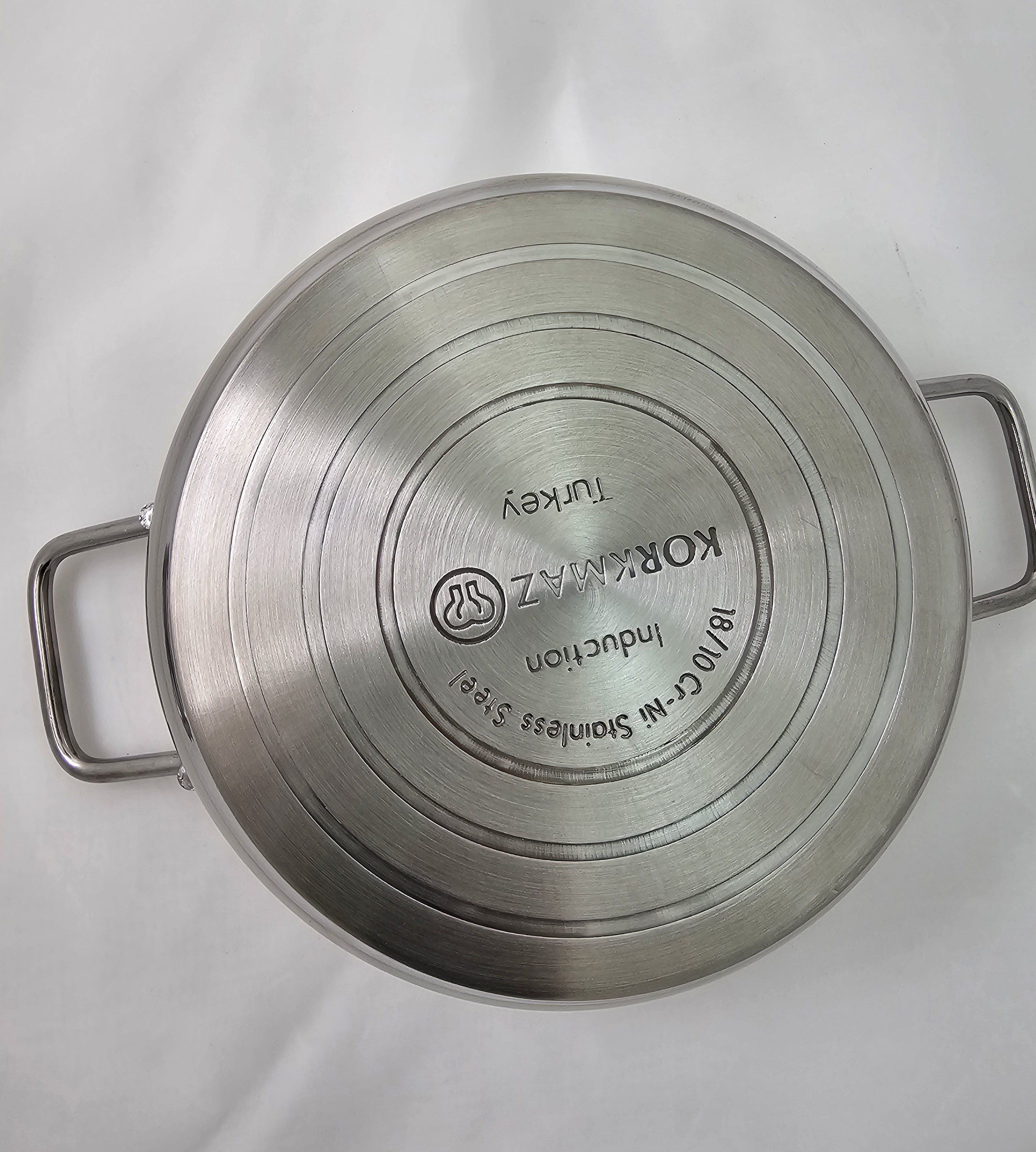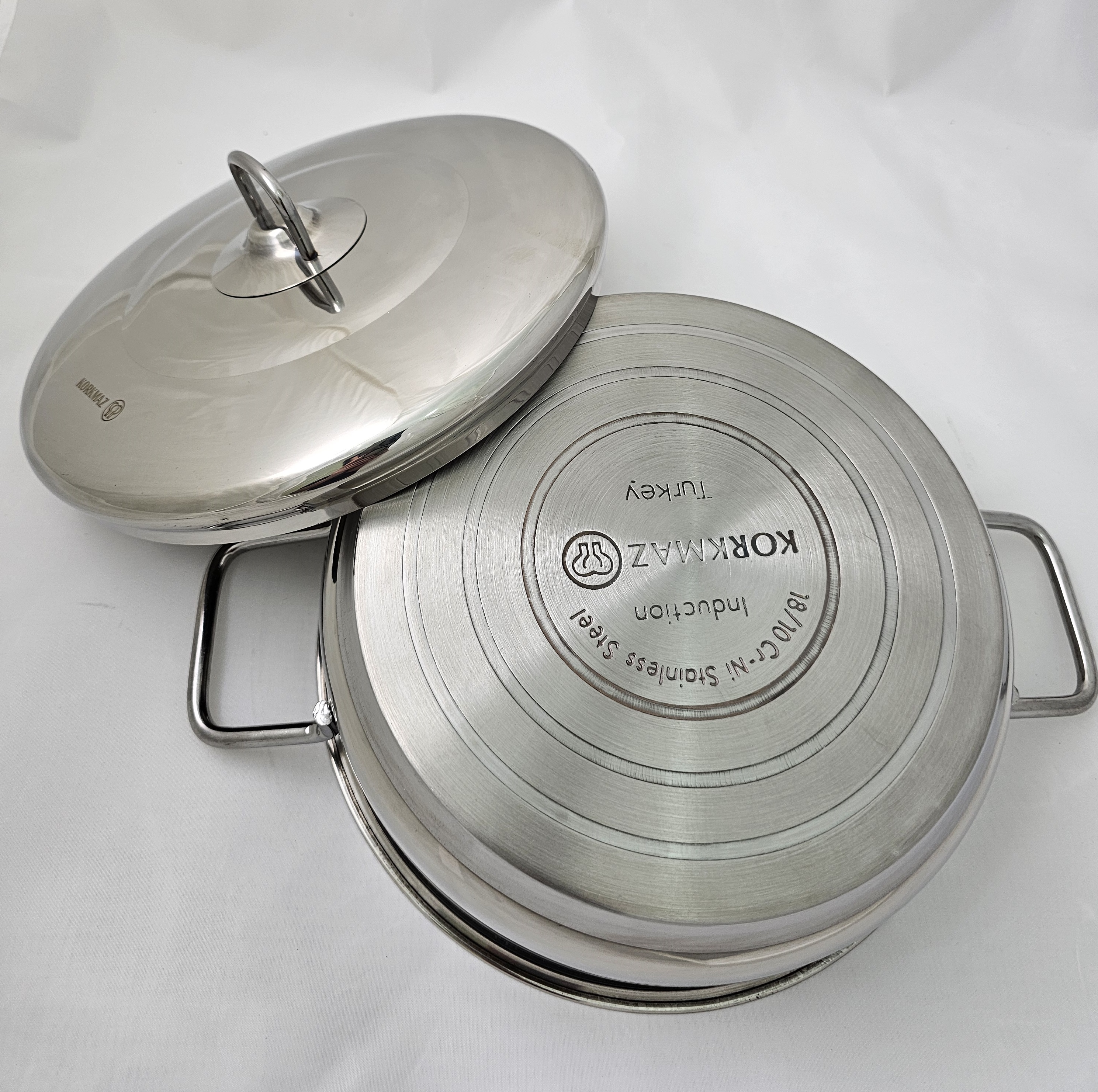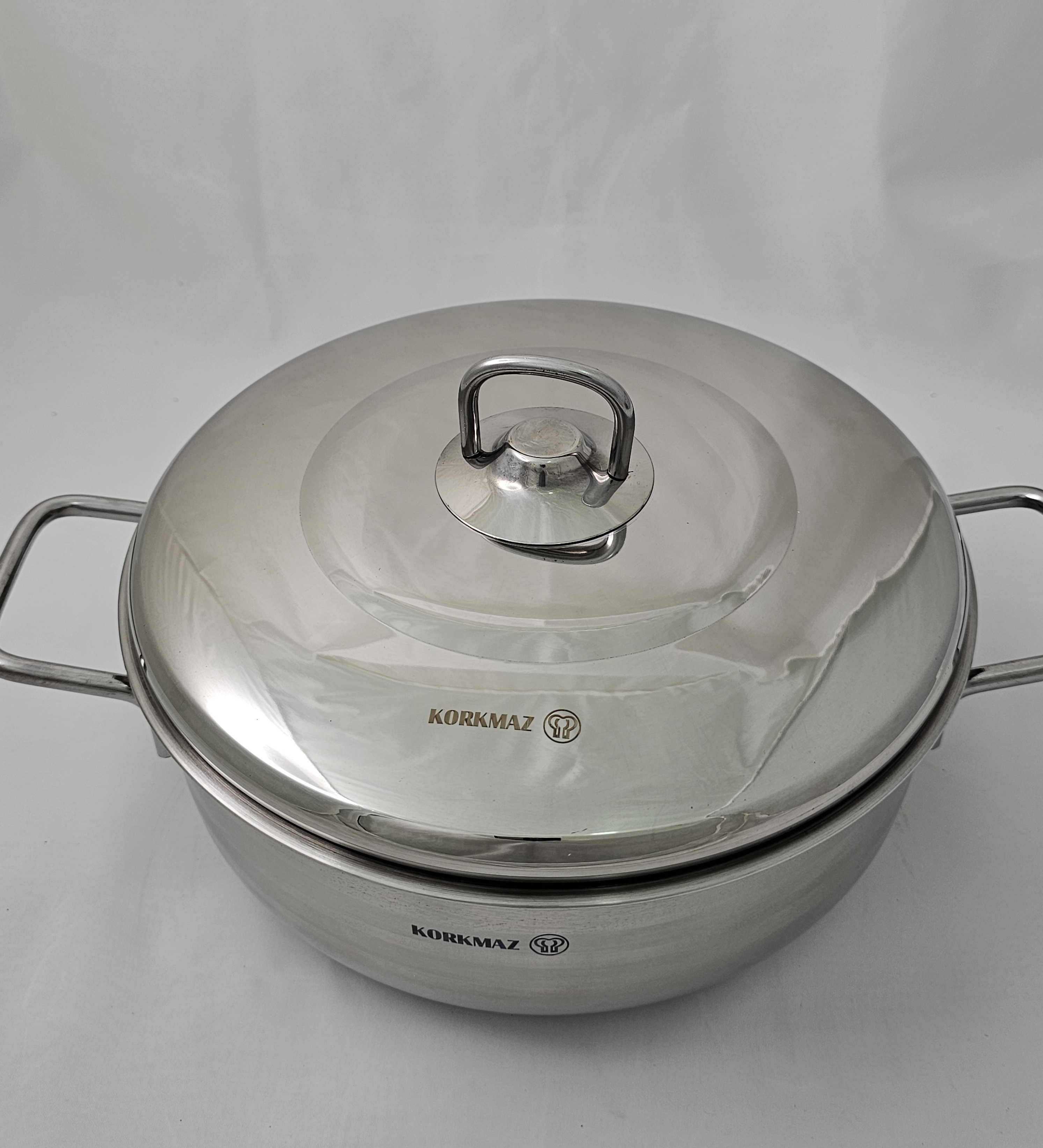 ورق استیل ضد زنگ INOX که در محصولات کرکماز به کار میرود، مرغوبترین نوع استیل است که ترکیبی از فولاد و کروم و نیکل بوده و در طول زمان ظاهر براق و شکل خود را حفظ میکند. این نوع استیل، استیل کروم-نیکل 10/18 نامیده میشود و به صورت مادامالعمر ضد زنگ و خوردگی است و فرسایش نمییابد. به دلیل عدم وجود پوشش خاص درون ظروف کرکماز، این ظروف کاملا بهداشتی و سالم هستند و بهترین انتخاب برای پخت و پز به شمار میآیند. به علاوه، کفهی سه لایهی چدنی سرویسهای قابلمه کرکماز دارای کپسولهای حرارتی است که موجب پخش یکنواخت و موثرتر حرارت میشود و در انرژی و زمان پخت و پز صرفه جویی به عمل میآورد. دستهها و برآمدگی در قابلمهی کرکماز حرارت را جذب نمیکند و همیشه خنک است و بنابراین باعث سوختن دست نمیشود. ظروف کرکماز نچسب و نسوز هستند و بنابراین برای پخت غذاهای بدون آب و روغن و نیز مناسب هستند.