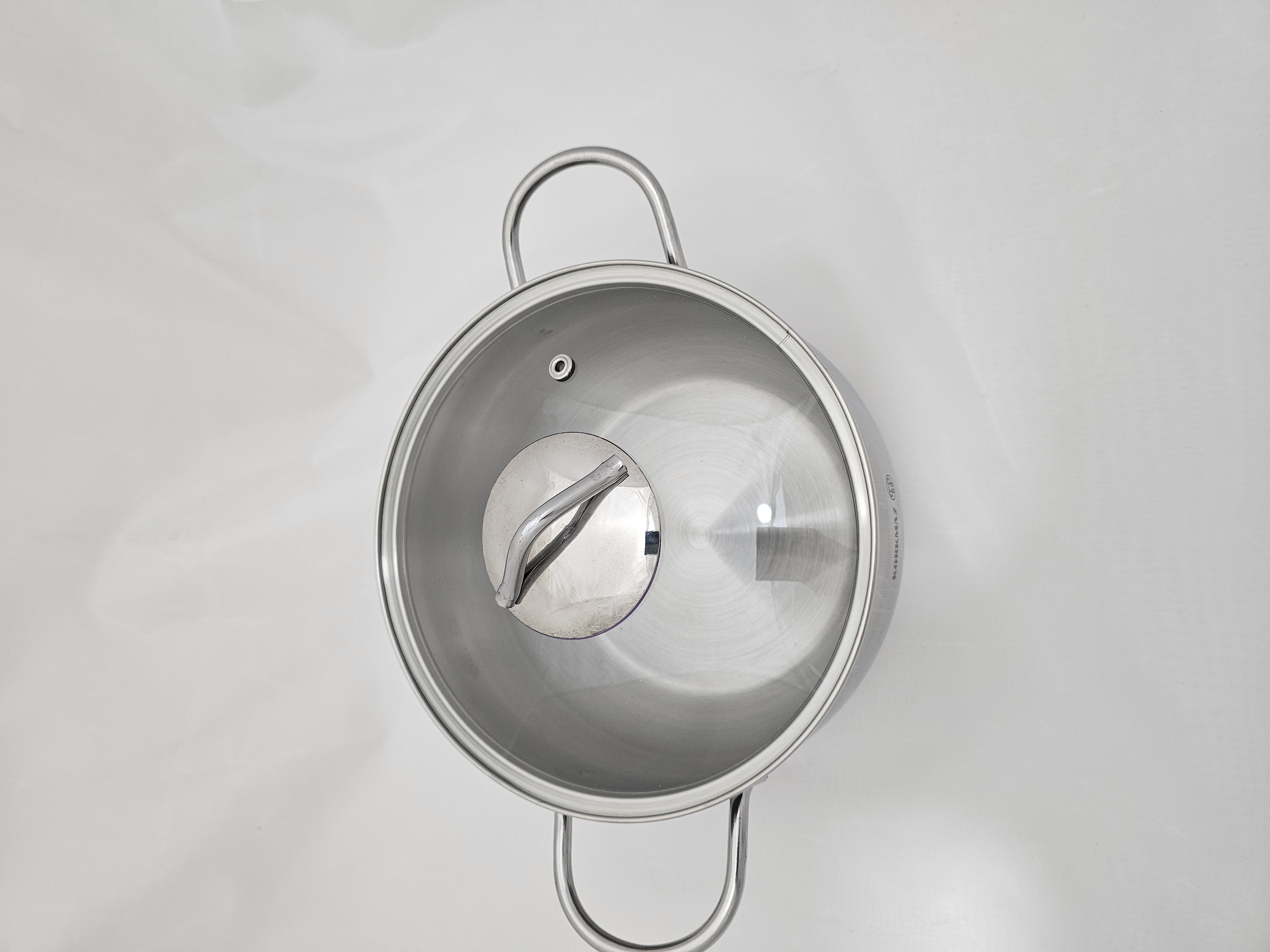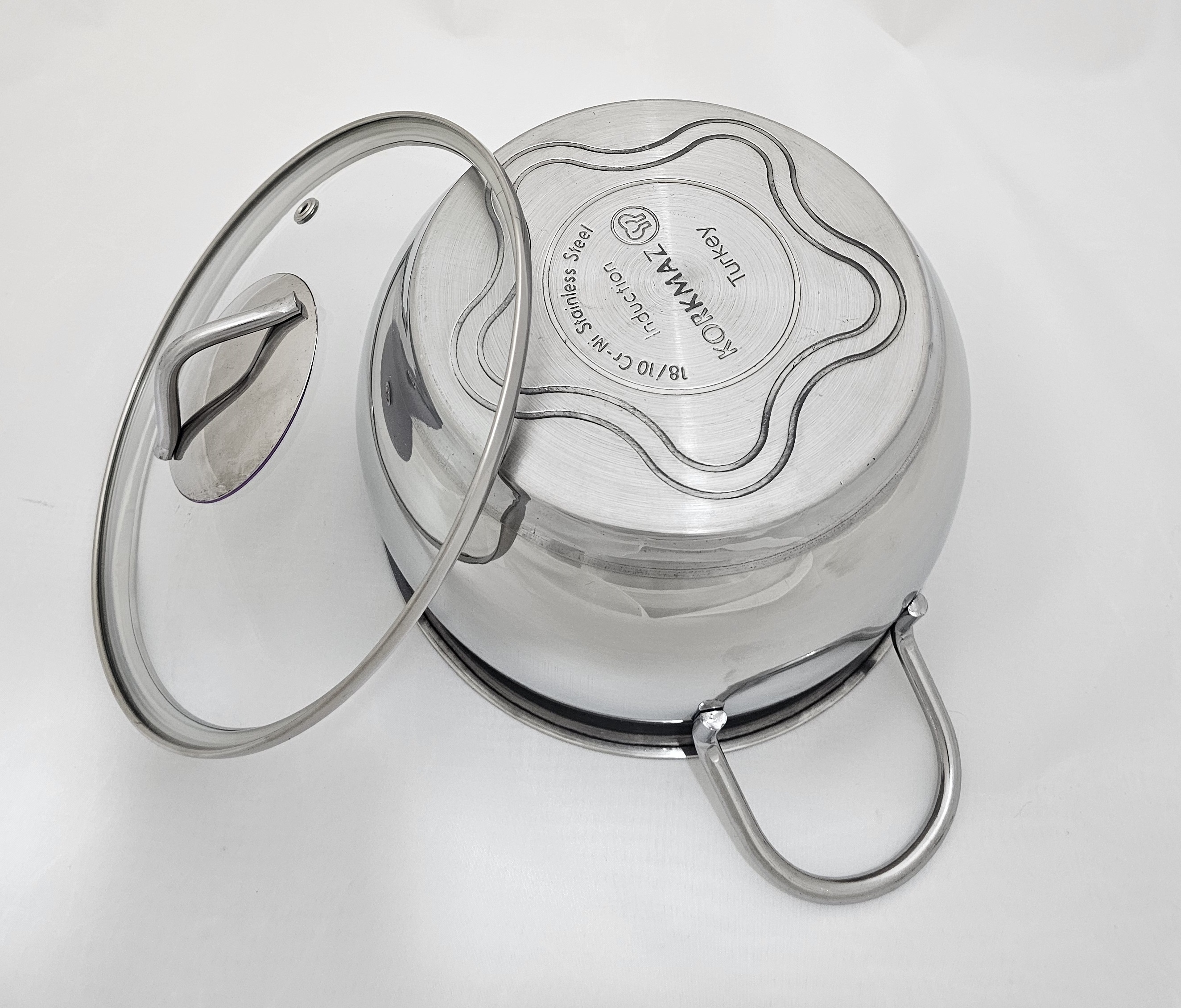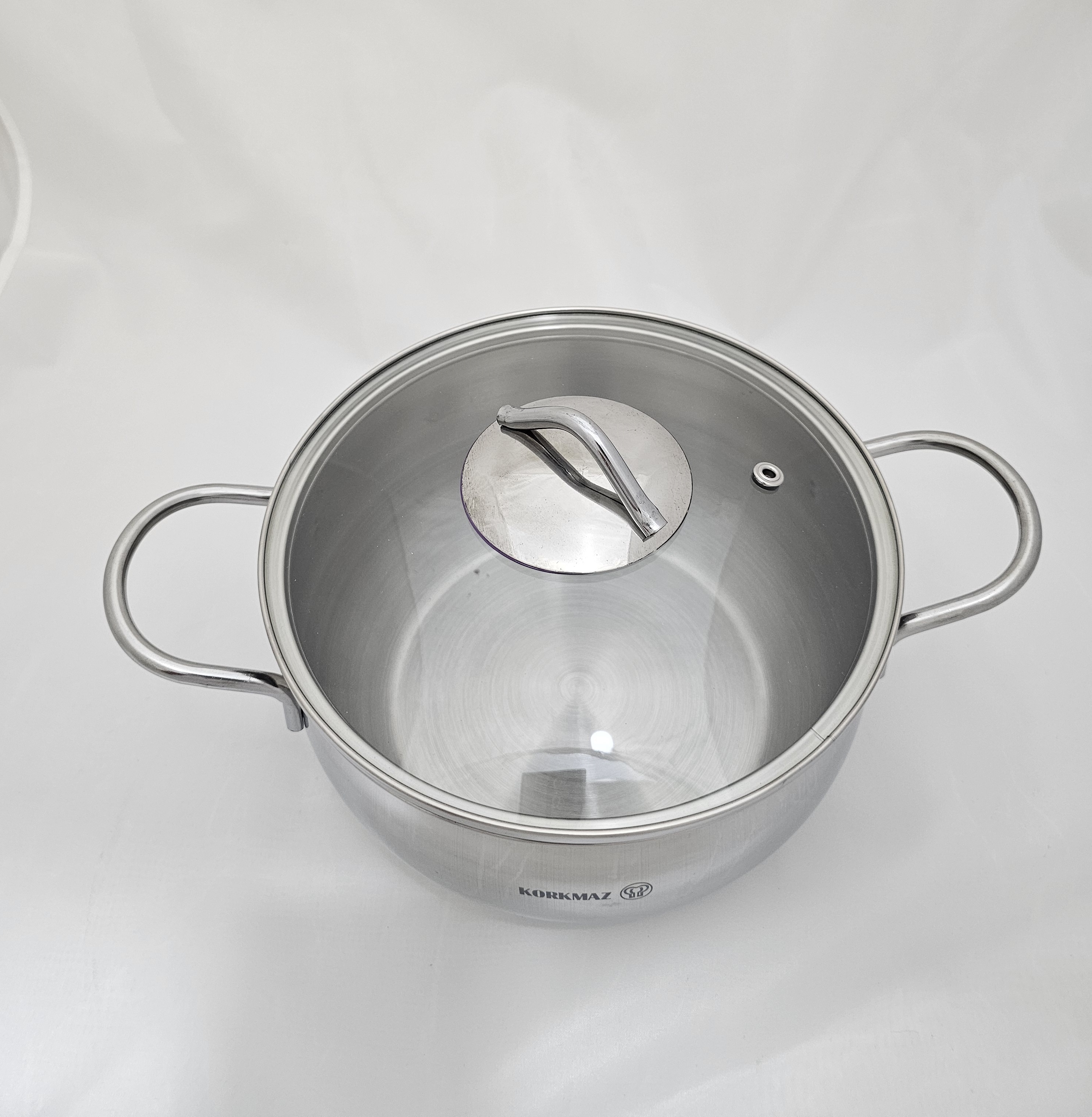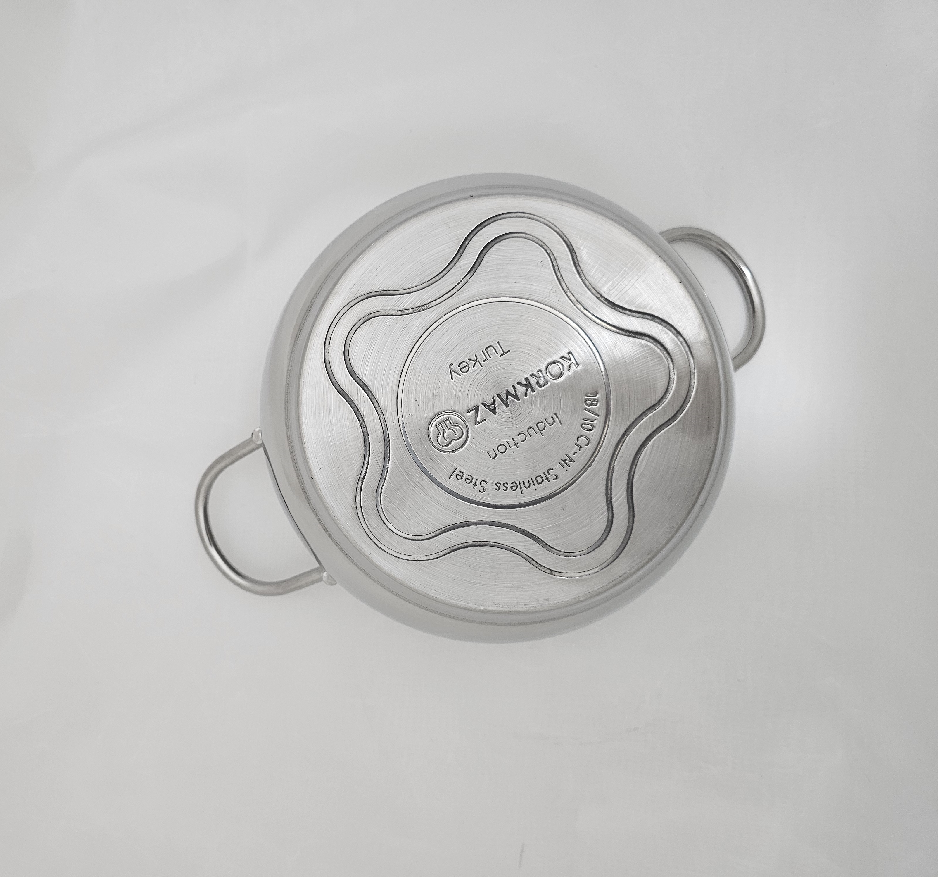 • مشخصات: قابلمه استیل کرکماز سایز 20 ارتفاع 10 cm عرض 20 cm استیل 18*10 Cr -Ni stainless Steel کف چدن 3 لایه قابلیت شستشوی در ماشین ظرفشویی درب شیشه ای با خروجی بخار