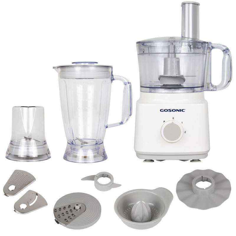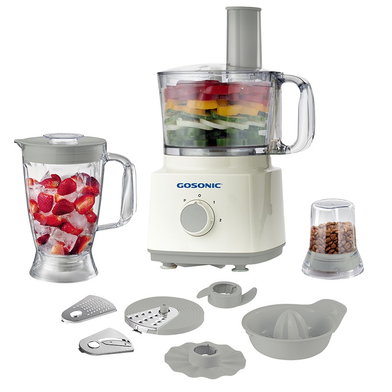 غذا ساز گوسونیک gfp-890 محصولی با ظرفیت و کیفیت ساخت بالا ،توان مصرفی مناسب(500وات) و قابلیت های ویژه که برای هر آشپزخانه ای لازم است. این دستگاه دارای یه پارچ مخلوط کن ، ظرف آسیاب و سه تیغه متفاوت رنده که خورد کردن ریز و درشت و خلالی را انجام می دهند. تیغه های این دستگاه از جنس استیل و مقاوم هستند.در حالت خورد کن که ظرف اصلی روی موتور سوار می شود و تیغه ها ، صفحات رنده یا سری مخصوص ورز دادن داخل این ظرف قرار گرفته و دستگاه را تبدیل به یک خورد کن قدرتمند تبذیل می کند که میتواند میوه و سبزیجات و حتی گوشت را ریز و اماده طبخ کند. آبمرکبات گیری نیز از قابلیت های خوب این دستگاه است.